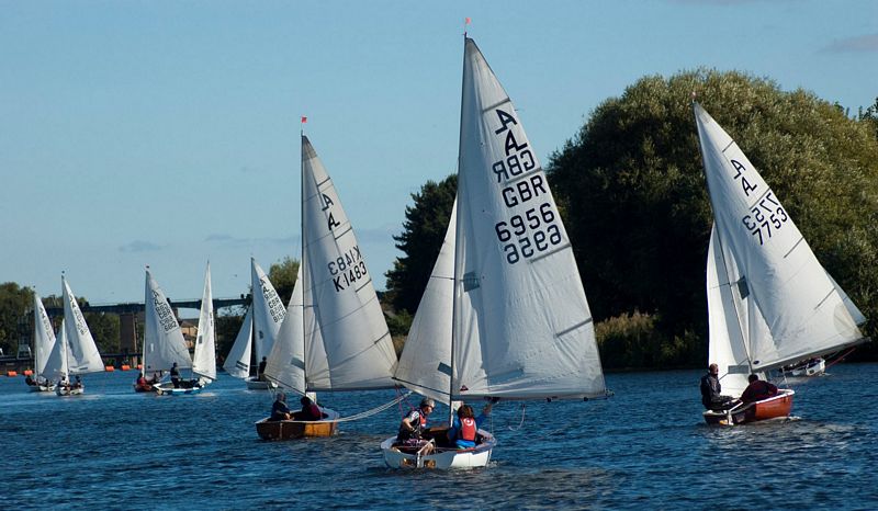 Bravely tacking through the fleet on port, Judy and Paul Armstrong quickly capitalised on a solid start, with Roger Poat crewed by Michael Brookman in hot pursuit. Even the Trent's notorious wind shifts could not stop the Armstrongs however, who arrived at the first mark with a comfortable lead. A tricky downwind leg saw many changes of position in mid fleet, and the equally tricky beat back up saw as many again. By the end of the first lap Judy and Paul looked unassailable, with Tim Coleman and Rosie Lyne in second followed by John Greenwood and Phil Smith.